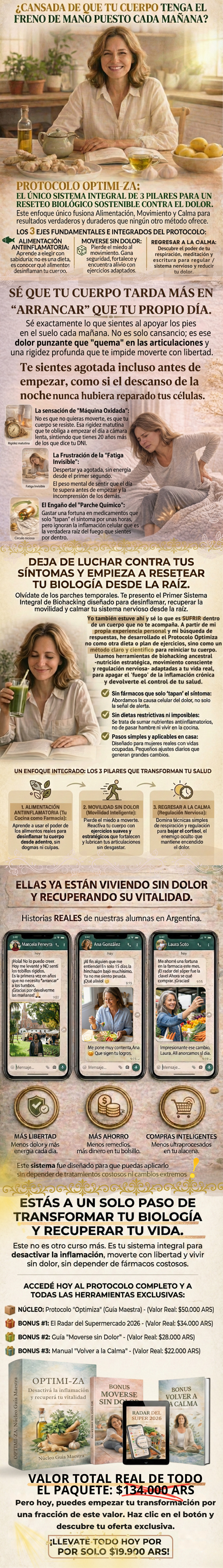 Soy de Jujuy y las rodillas y la espalda me frenaban para todo. Con el método aprendí a ordenar la comida, bajar la inflamación y calmar el cuerpo. Hoy camino con menos dolor y recuperé confianza en mi movimiento.
